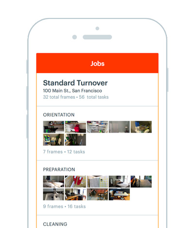 - Jobs are broken down into 4 sections to guide hosts through a turnover checklist (Orientation, Preparation, Cleaning, Finish). Then cleaning pros view the checklist in a manageable order.